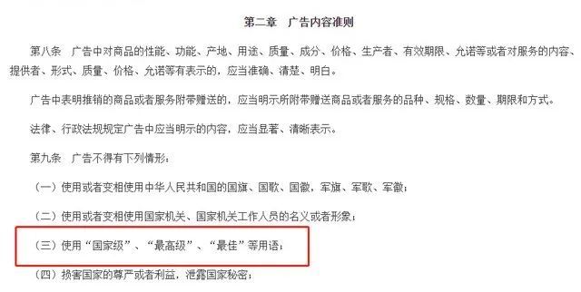 众所周知,我国广告法对于企业宣传用语上有明确的禁区,广告法第九条明确规定,不得使用“国家级”、“最高级”、“最佳”等用语。而海信这次打出的广告“中国第一、世界第二”,公然宣称自己是“中国第一”的广告语恰恰就踩在了广告法的雷区上。