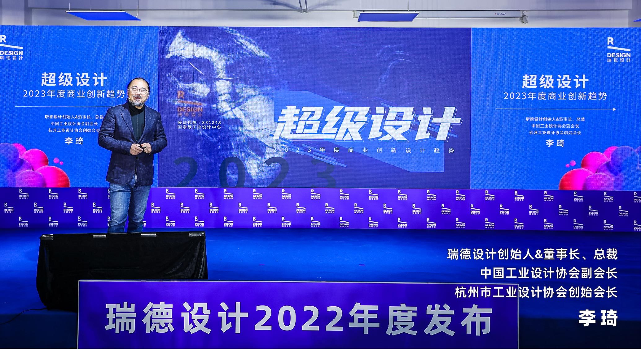瑞德设计创始人&董事长、总裁,中国工业设计协会副会长,杭州工业设计协会创始会长李琦,发表了《超级设计-2023年度商业创新趋势》的演讲,将发布会气氛推向高潮。