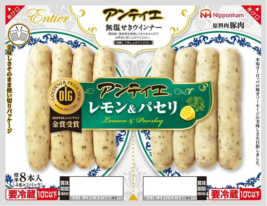 Nipponham Entier的这款香肠风味特别,带有柠檬温和清爽的酸味和欧芹的清新香气。