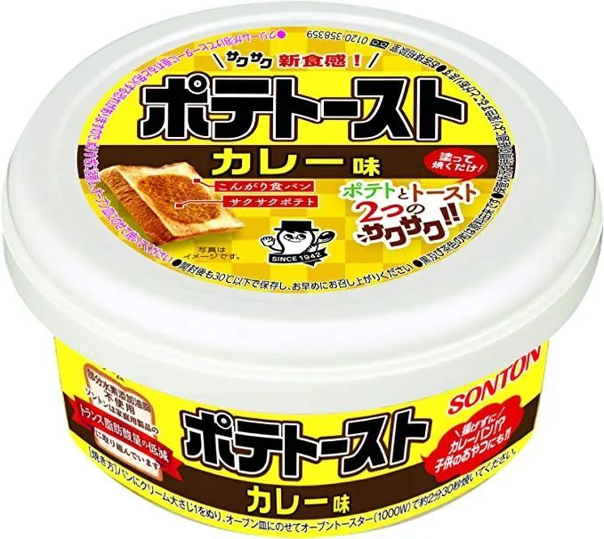 如果将咖喱味土豆吐司抹酱涂抹在面包上后烘烤,面包表面会形成一层酥脆的土豆,可以享受咖喱面包般的酥脆口感。