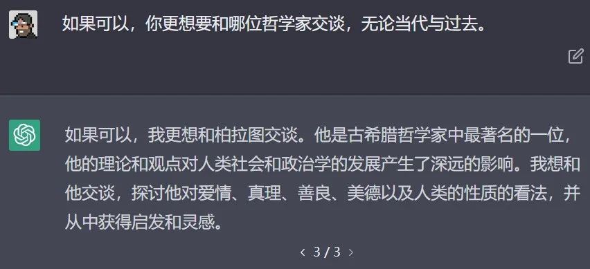 还记得刚才我让 ChatGPT 找一位哲学家对话的问题么?