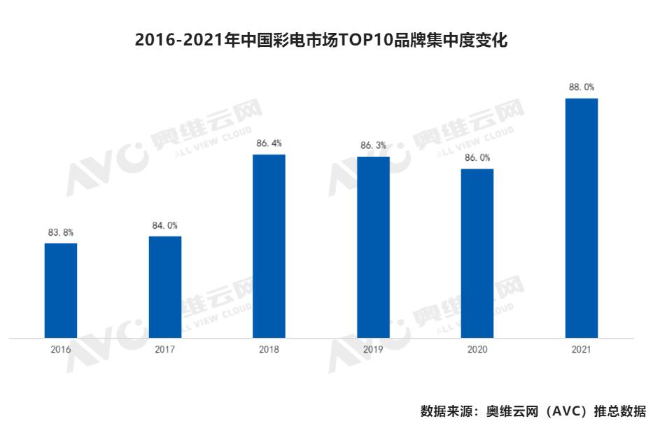 电视同理,2016年以来,电视常常进入存量时代,一度分散的市场,从这一时期开始进入饱和竞争状态,整体格局不断发生优化,CR10占比不断增加,其中CR10中,CR5又占了绝大部分市场。