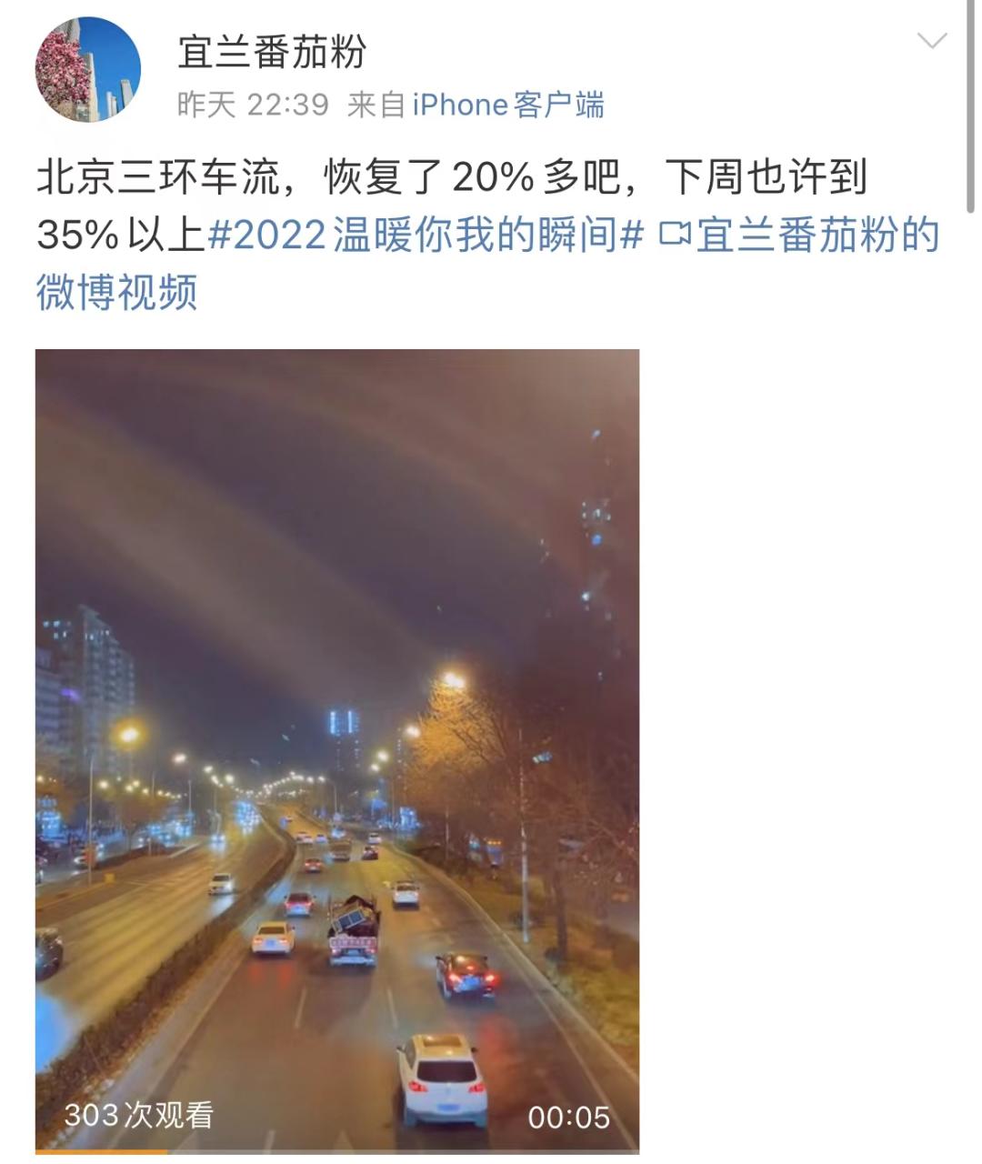 而也有网友观察到,“对比前两天,车流多了十分之一,尤其是本周‘阳康’越来越多,距离恢复正常越来越近了”。