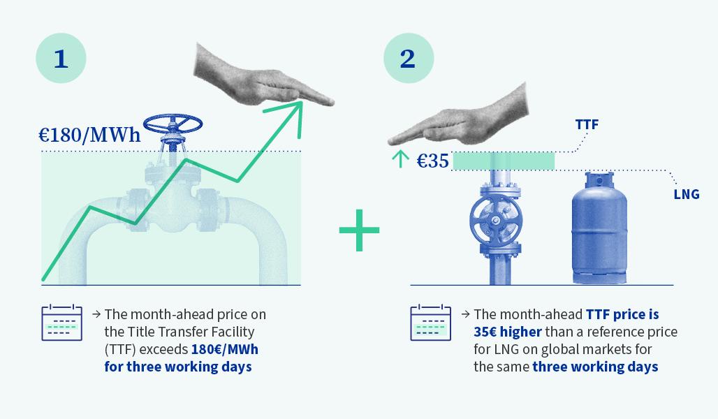 在欧委会11月提出的方案中,触发条件是TTF价格连续两周超过275欧元/兆瓦时,以及连续10个交易日超过国际LNG参考价格58欧元/兆瓦时。