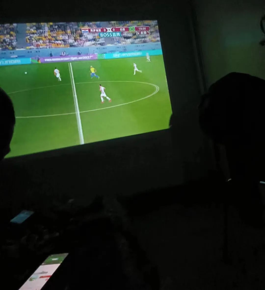卢炜与朋友在家中看世界杯。(卢炜供图)