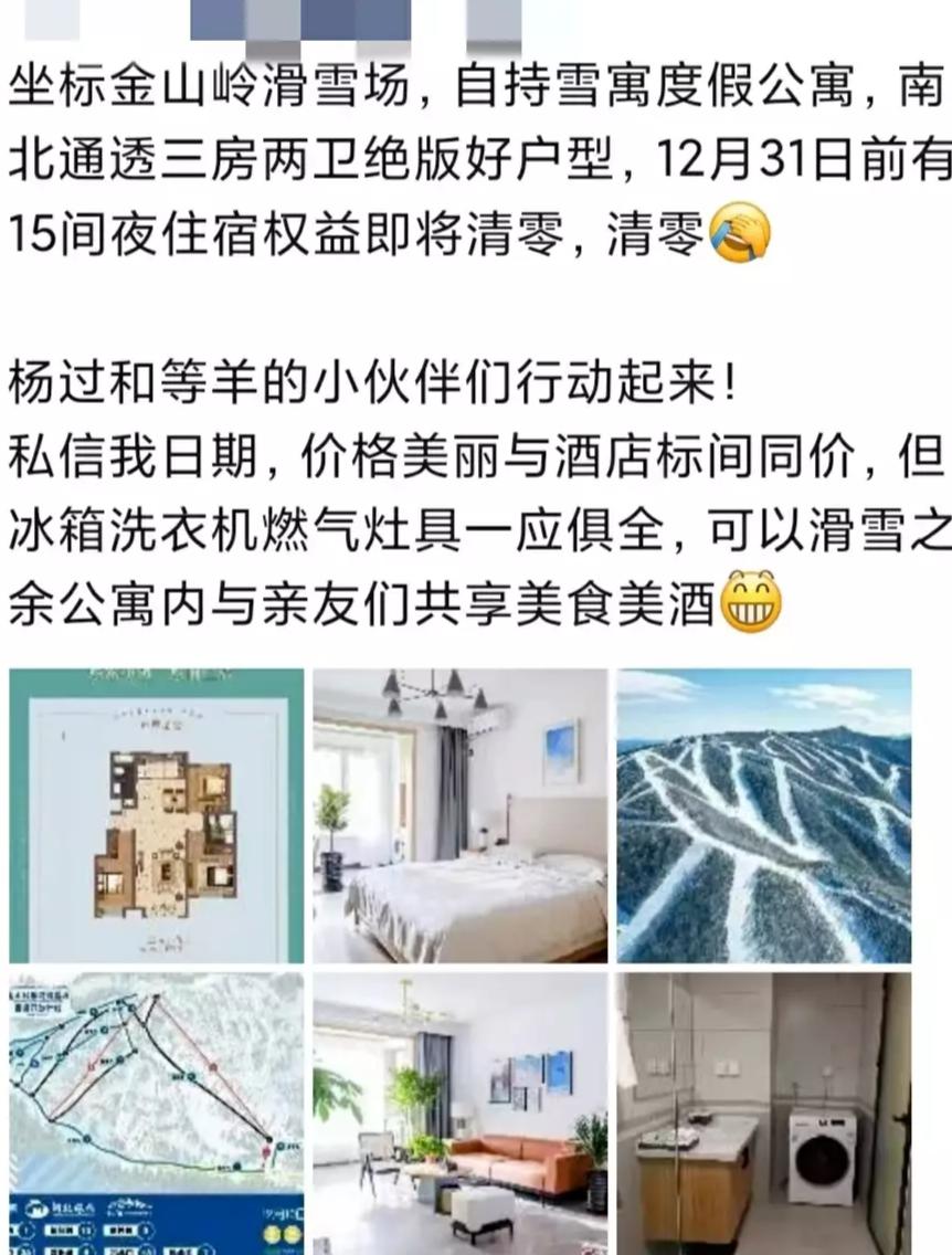 图/希希在朋友圈发布雪场公寓招租信息,来源/希希供图