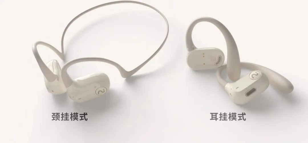 作为一款开放式耳机,舒适性也是iFLYBUDS Air的核心卖点。此外,iFLYBUDS Air还开创性地推出耳挂与颈挂双模式佩戴设计。在耳挂模式下,轻巧便携,更贴耳、稳定性更强; 在颈挂形态下,iFLYBUDS Air拿取方便,不用时也可挂在脖子上,为耳朵减负,带来更轻松的佩戴体验。