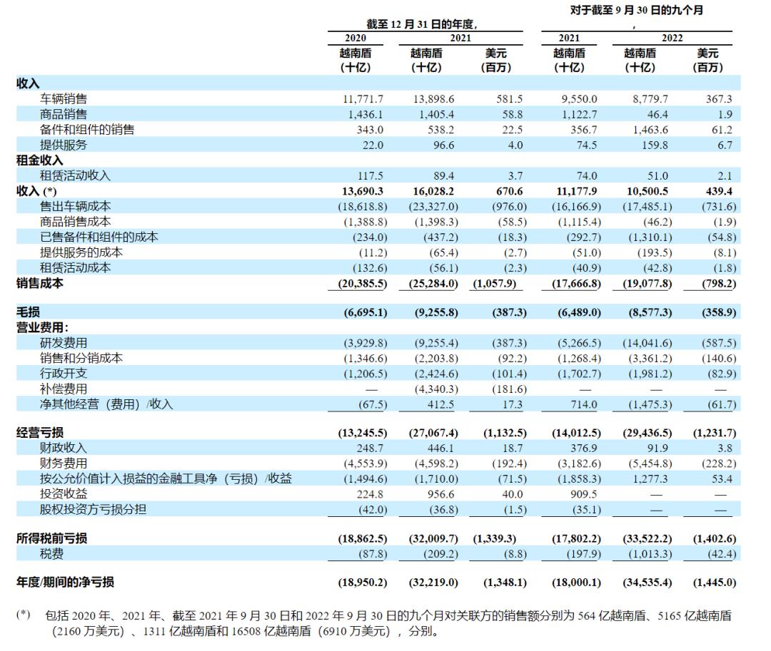 巨额投入之下,VinFast 转型做电车也不可能立马收效,所以这两年亏得裤子都没了,2021 年净亏损 322190 亿越南盾 ( 约合人民币 95 亿 ),2022 年前九个月净亏损更是超过去年全年,达到了 345354 亿越南盾( 约合人民币 102 亿 )。