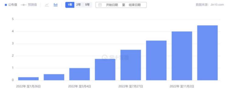 3 月 17 日凌晨 2 点,美联储宣布加息 25 基点。自此,美联储从 2020 年 3 月开启的长达两年的史诗级放水的水龙头开始被拧紧。从 3 月至今,美联储已经加息 7 次,基准利率从年初的 0.5% 升至 4.5%。
