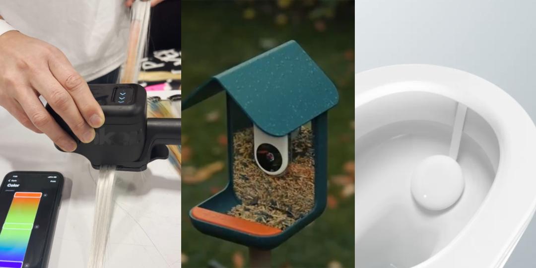 当然,还有很多新奇的小玩意,比如能给你头发“打印”颜色的打印机、能够“赏鸟”的智能喂鸟器、抱一抱就可以放松的枕头、放在马桶里通过检测尿液判断身体健康指标的检测仪。