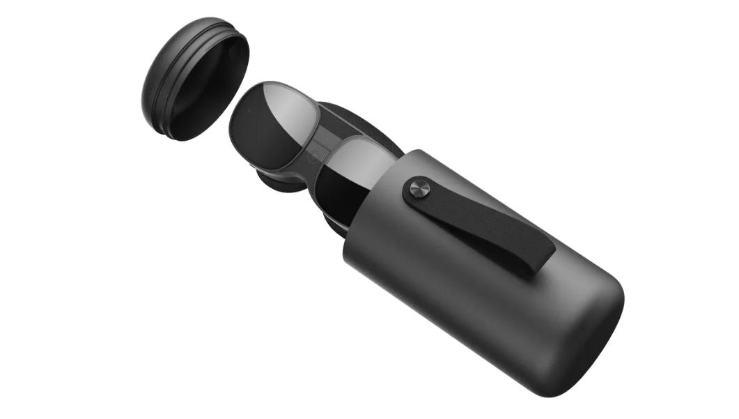 其实Vive XR Elite比较亮眼的是其便携性,它的重量在340g左右,在折叠后,可以直接装在一个桶装收纳盒里,大小跟一个水杯差不多。