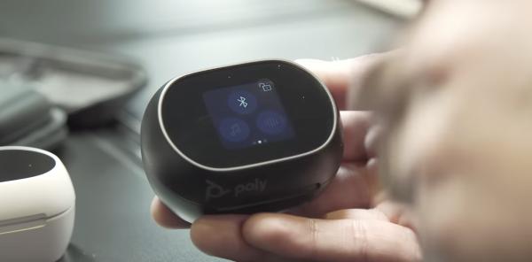 惠普也加入了在TWS耳机上装屏幕的行列,其推出的Poly Voyager Free 60系列是专门为“日常混合办公工作者”设计,这块屏幕的功能看起来与JBL并没有很大区别,都是接听、拒绝来电及音乐播放等。