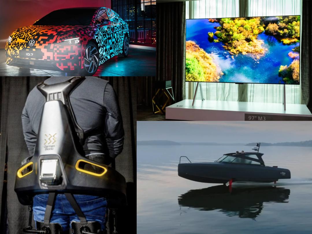 会发光能“蹦迪”的电动汽车、又能折又能卷的折叠大屏、百寸的无线大电视、能杀菌消毒照顾老人的机器人、搬重物送快递一把好手的外骨骼机器人,还有会“自动驾驶”的婴儿车、能够悬浮在水面上行驶的水翼船。