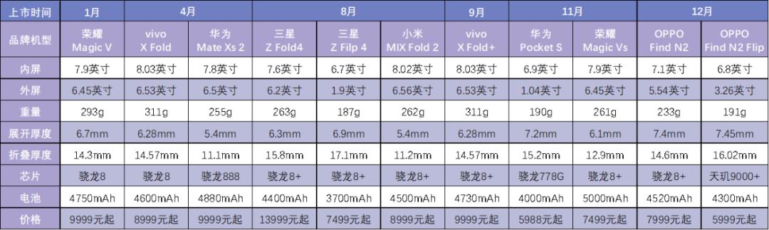 2022年主流品牌折叠屏产品汇总,制表:洞见新研社