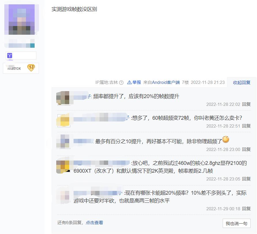 此外,网友们还提到了一点,如果显卡超频性能太强,那么高端显卡还怎么卖。显卡行业霸主NVIDIA CEO黄仁勋本来就以精湛的刀法闻名于世,号称游戏差距3帧,就能分出一张新显卡,如果让你超频就追上来了,那么势必会影响高端显卡的销量。