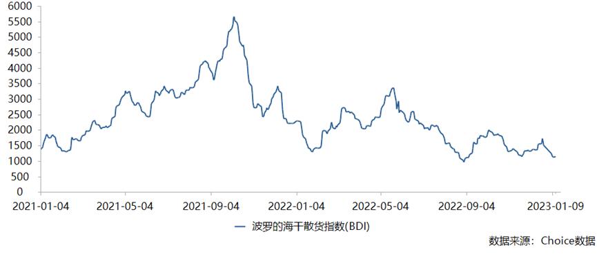 2023年1月3日,BDI单日下跌17.49%,为1984年有记录以来最大单日百分比跌幅;截至1月9日,BDI报1139点, 较2022年底下跌了24.8%,较2021年10月初的高位下跌了接近80% 。