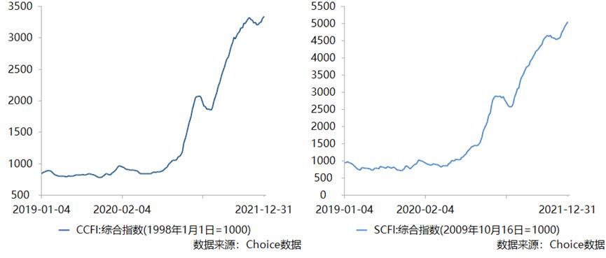 2021年年底,CCFI和SCFI分别为3344.24点和5046.66点;相比之下,2019年初时,这两个指数只有841.78点和940.86点。