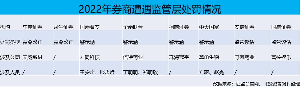 此外,2022年国泰君安及保荐人王安定、邢永哲在保荐力同科技股份有限公司时,对部分数据披露前后不一以及数据核查依赖发行人的情况,而受到监管层的警示处罚;东莞证券在保荐珠海天威新材料股份有限公司时,未落实回避要求而被要求整改;华泰联合证券及保荐人丁明明、郑明欣也因在保荐成都倍特药业股份有限公司过程中,对公司原始凭证异常未展开调查等情况,而被监管层警示。
