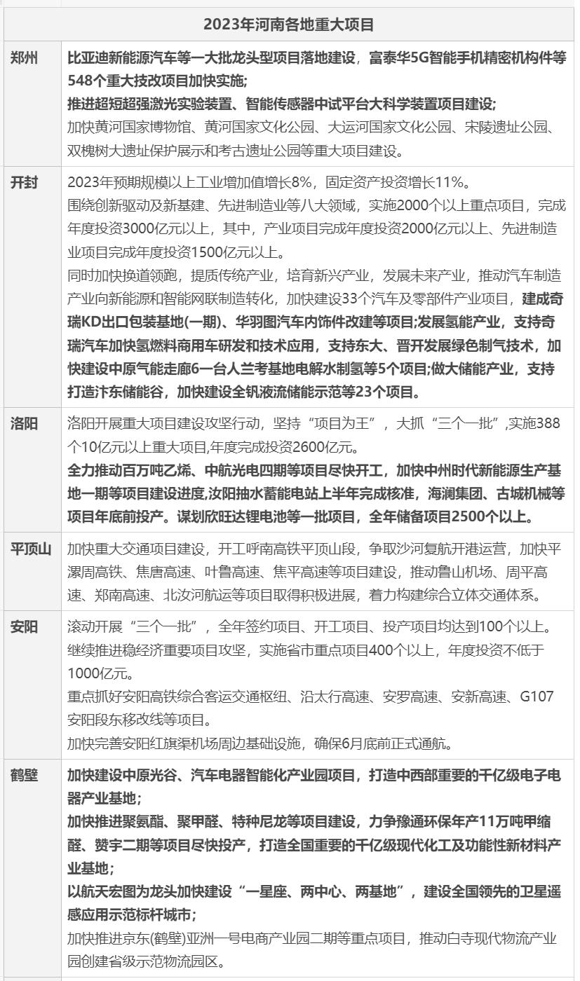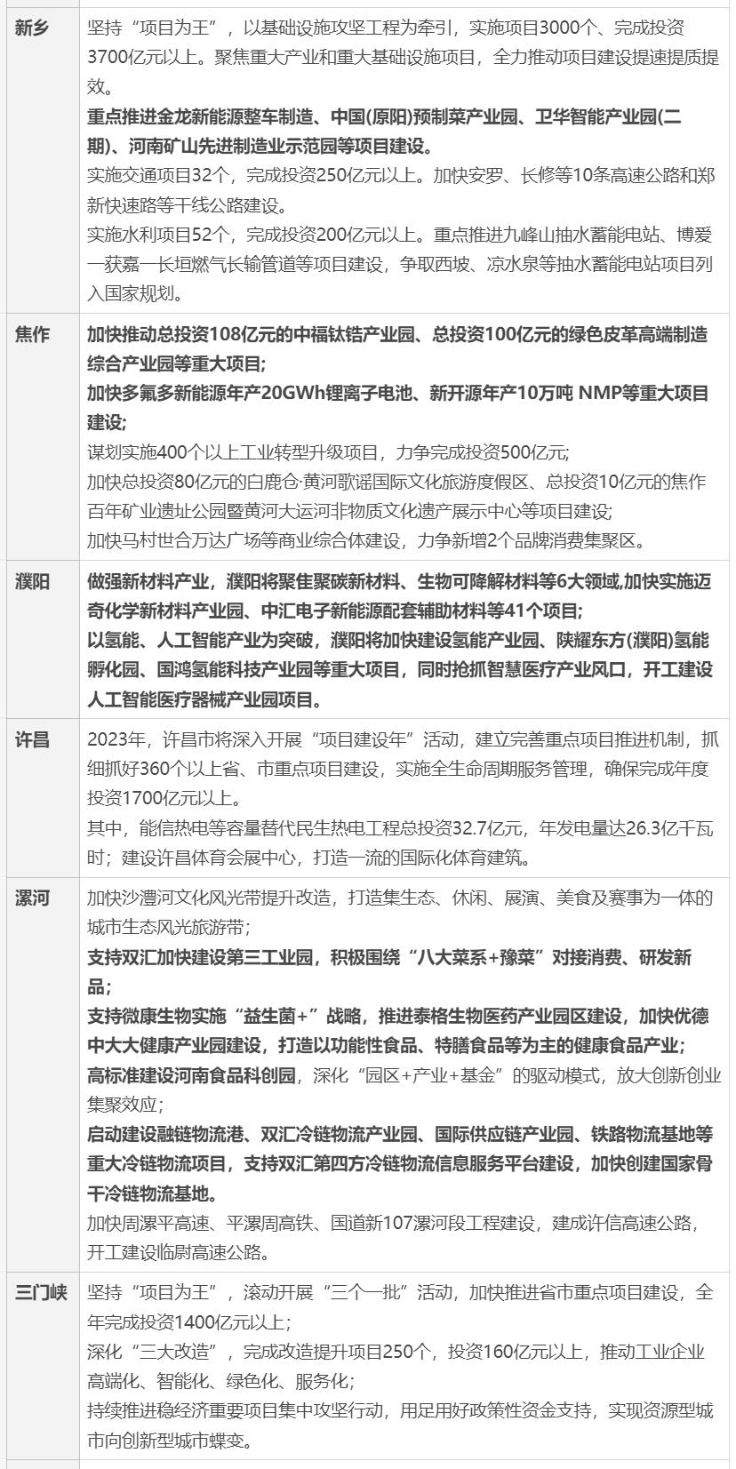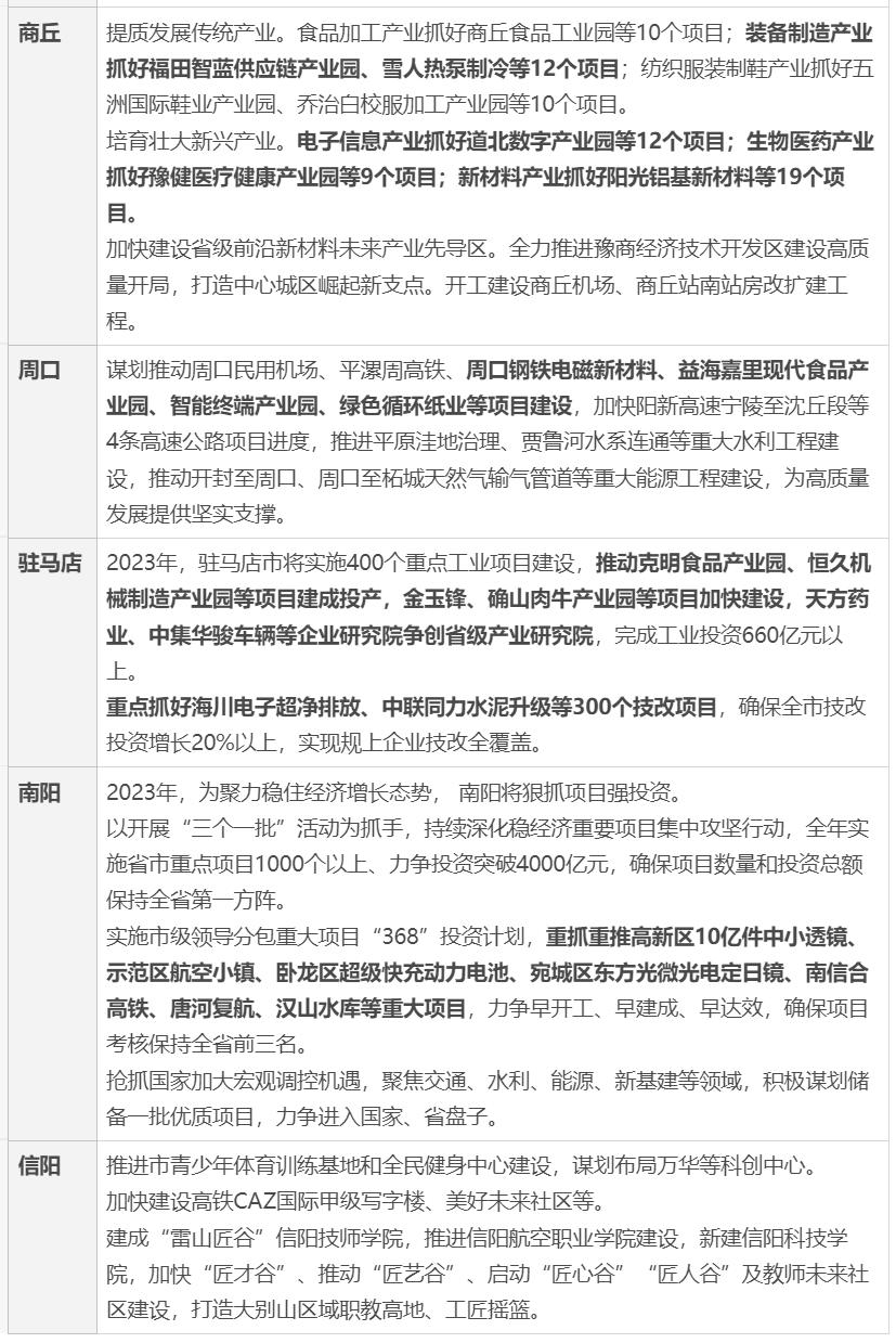 2023年工作计划:按照省委、省政府部署,2023年,春节假期后第一天将举行全省第七期“三个一批”活动,初步预计全省将分别集中签约、开工、投产项目400个、1000个、800个以上,总投资分别超过3500亿元、6000亿元、5000亿元。