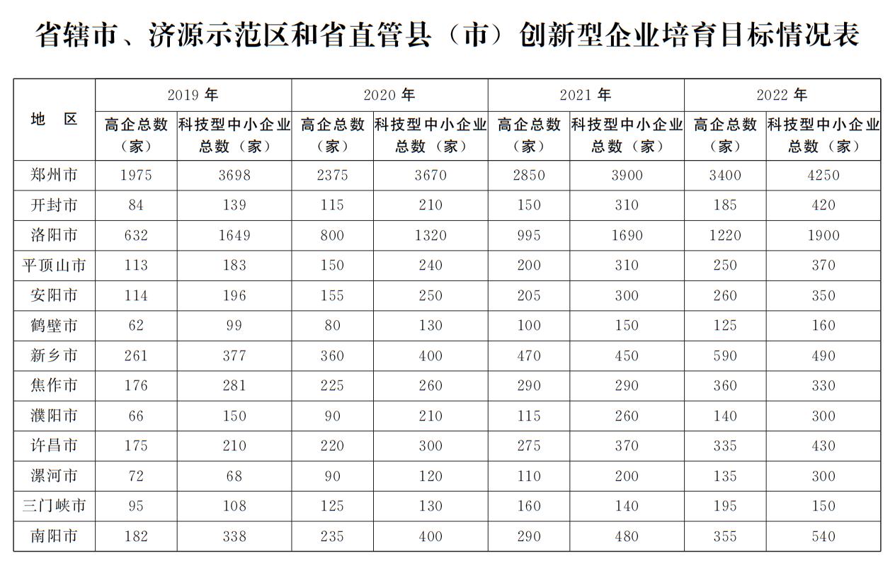 为大力实施创新驱动发展战略,强化企业技术创新主体作用,促进全省创新型企业健康快速发展,2020年9月21日河南出台《河南省加快培育创新型企业三年行动计划(2020-2022)》。