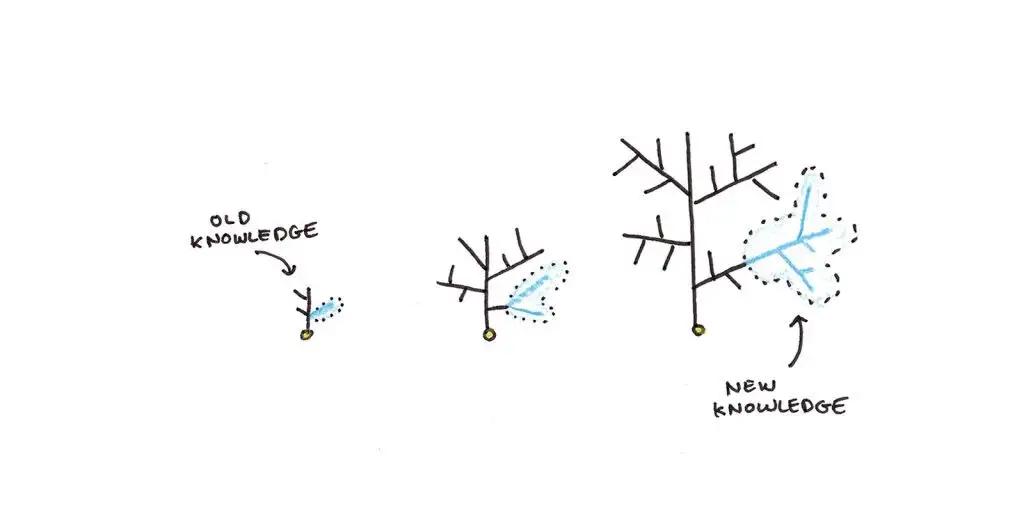 学习新事物时,我们会将它们整合到已知的事物中。当今后回顾信息时,这种整合能提供更多的调用链接。但是,当我们对某个主题知之甚少时,置入新信息的机会就会减少。这使信息更容易被遗忘。就像种子长出水晶一样,一旦有了基础,以后的学习就会容易得多。