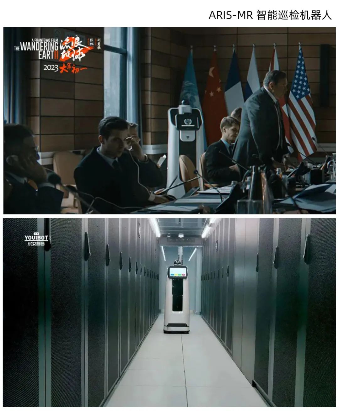ARIS-SR是个身高一米左右,有着长脖子和大小眼的机器人——长脖子是它的六轴机械臂,可以从各个角度观察仪表盘,大小眼里包括了AI识别和热成像,不仅要准确识别数据,还要全面监测环境中的声纹、气体,确保运维安全。优艾智合是移动机器人服务商,产品主要应用于工业物流和巡检运维领域。除了ARIS-SR,优艾智合还有多款机器人产品参与了《流浪地球2》的拍摄。