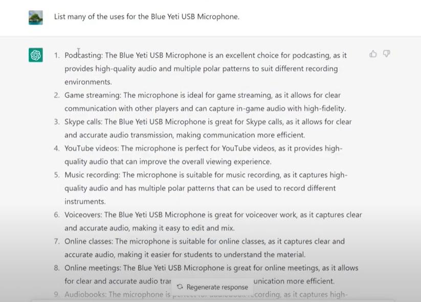 比如,我们针对一个USB麦克风,我们可以请它写“description”,然后让它写出“卖点”,再写出的“应用场景”,等等。