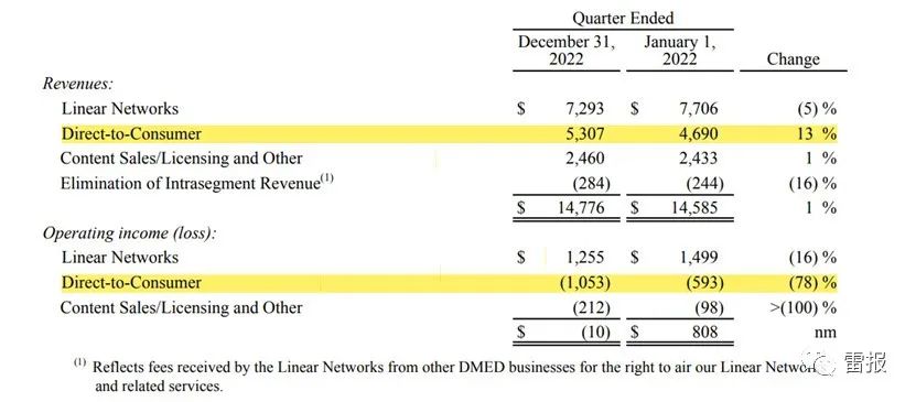 具体从业务部门来看,“媒体与娱乐发行”部门包括三个板块,分别为线性网络、直面消费者(流媒体)和内容销售/许可(含电影发行业务)及其他三个部分。其中,“媒体与娱乐发行”业务中的内容销售/许可共计实现收入24.6亿美元,与去年基本持平,营业亏损高达2.12亿美元,同比增加116%。营业亏损的增加主要是由于电视/SVOD和家庭娱乐分销业绩下降以及管理成本上升,该亏损部分抵消了本季度较好的院线发行业绩。其中本季度发行的《阿凡达:水之道》成为全球有史以来第四大票房最高的电影,迄今为止票房收入接近22亿美元。