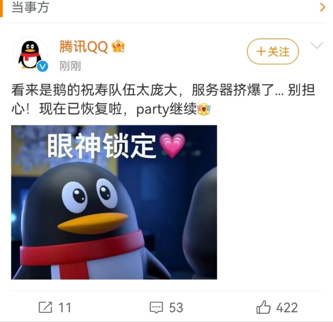 官方回应称,看来是鹅的祝寿队伍太庞大,服务器挤爆了。