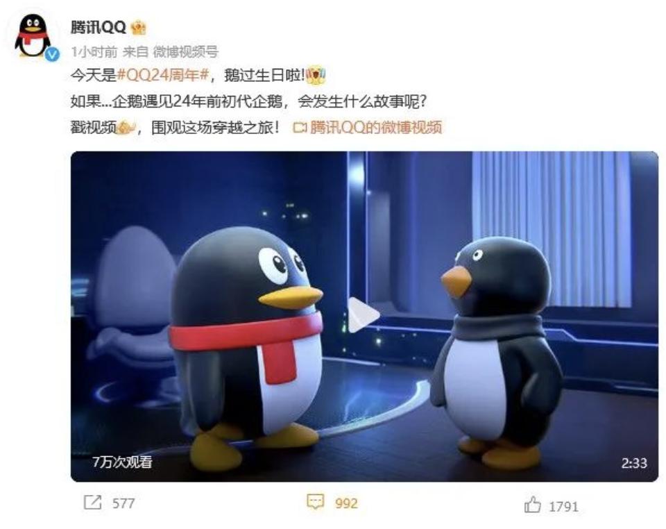 尴尬的是,此时的腾讯QQ官方微博,正在发文庆祝QQ 24周年,讲述一路成长的故事。