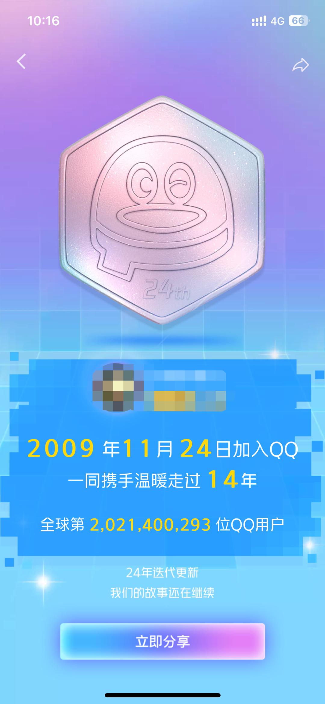 依稀记得,我是高中时,被同学带去网吧打CF,才注册了一个QQ,时间算比较晚的,已经是排名20亿以后的用户。