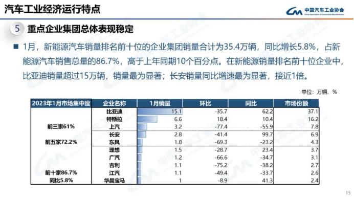 数据显示,对比2022年春节月的2月份,2023年1月新能源汽车的产销分别增长15.4%和22.2%。