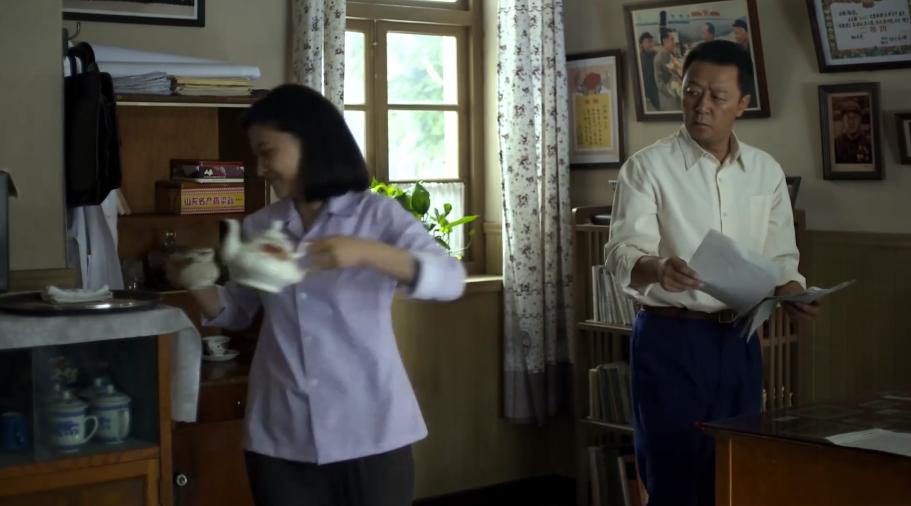 ▲电视剧《父母爱情》,安杰和江德福在大黑山岛生活那段日子,黄色盒子装的“山东名产品高粱饴”,摆在书房最显眼的柜子上。