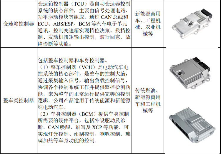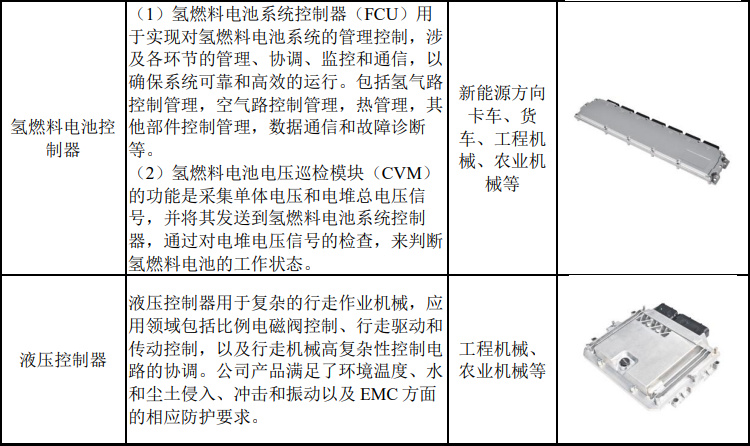 公司依托对客户需求的准确理解和多年的技术研发积累,在汽车电子领域已掌握多项核心技术,形成了以发动机控制器为代表的多类基于复杂算法的汽车电子产品矩阵。目前,公司产品已广泛应用于新能源商用车、工程机械、农业机械等多个领域。
