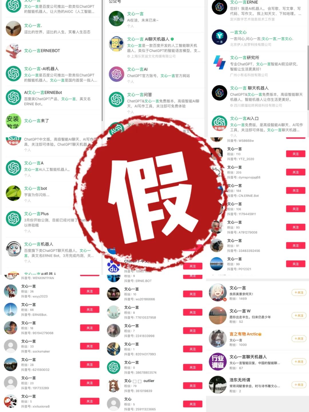 随后,网上便出现了很多以「文心一言」命名的社交账号。百度方面表示,这些账号都不是真的,「文心一言」目前还处于上线前的冲刺阶段,3 月将和大家正式见面。