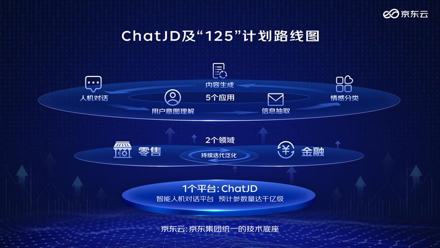 ChatJD 将以「125」计划作为落地应用路线图,包含一个平台、两个领域、五个应用。