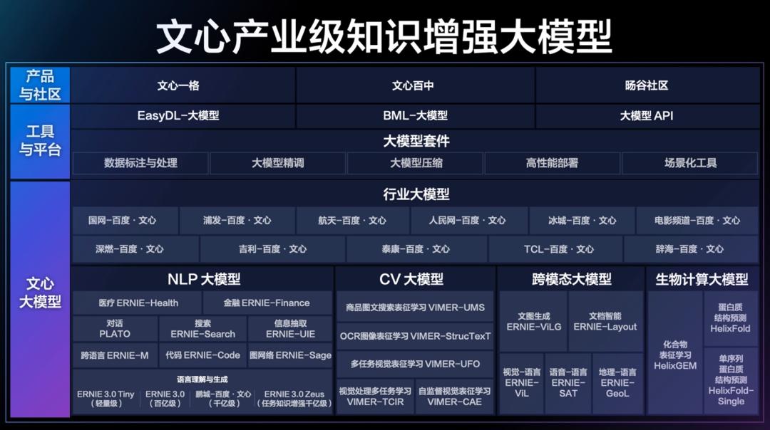 这个模型层的产业级知识增强「文心」系列大模型已经布局多年,具备跨模态、跨语言的深度语义理解与生成能力。2019 年开始,百度深耕预训练模型研发,先后发布知识增强文心(ERNIE)系列模型。文心系列模型基于持续学习的语义理解框架,从大规模知识和海量数据中融合学习,效率更高,效果更好。2021 年 12 月,ERNIE 3.0 升级为全球首个知识增强千亿大模型鹏城 - 百度・文心,同时,产业级知识增强大模型文心全景图亮相。文心大模型在历次升级中持续加强知识增强,使之成为与产业级并列的两大核心特色之一。