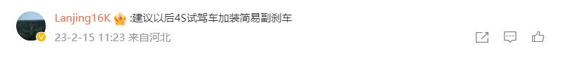 有网友对此表示:“真是飞来横祸,无妄之灾,太惨了!”“建议以后4S店试驾车加装简易副刹车。”但也有网友质疑称:“怎么想的啊,在人员密集区试驾。就算是有经验的司机,换辆新车也得适应啊。”