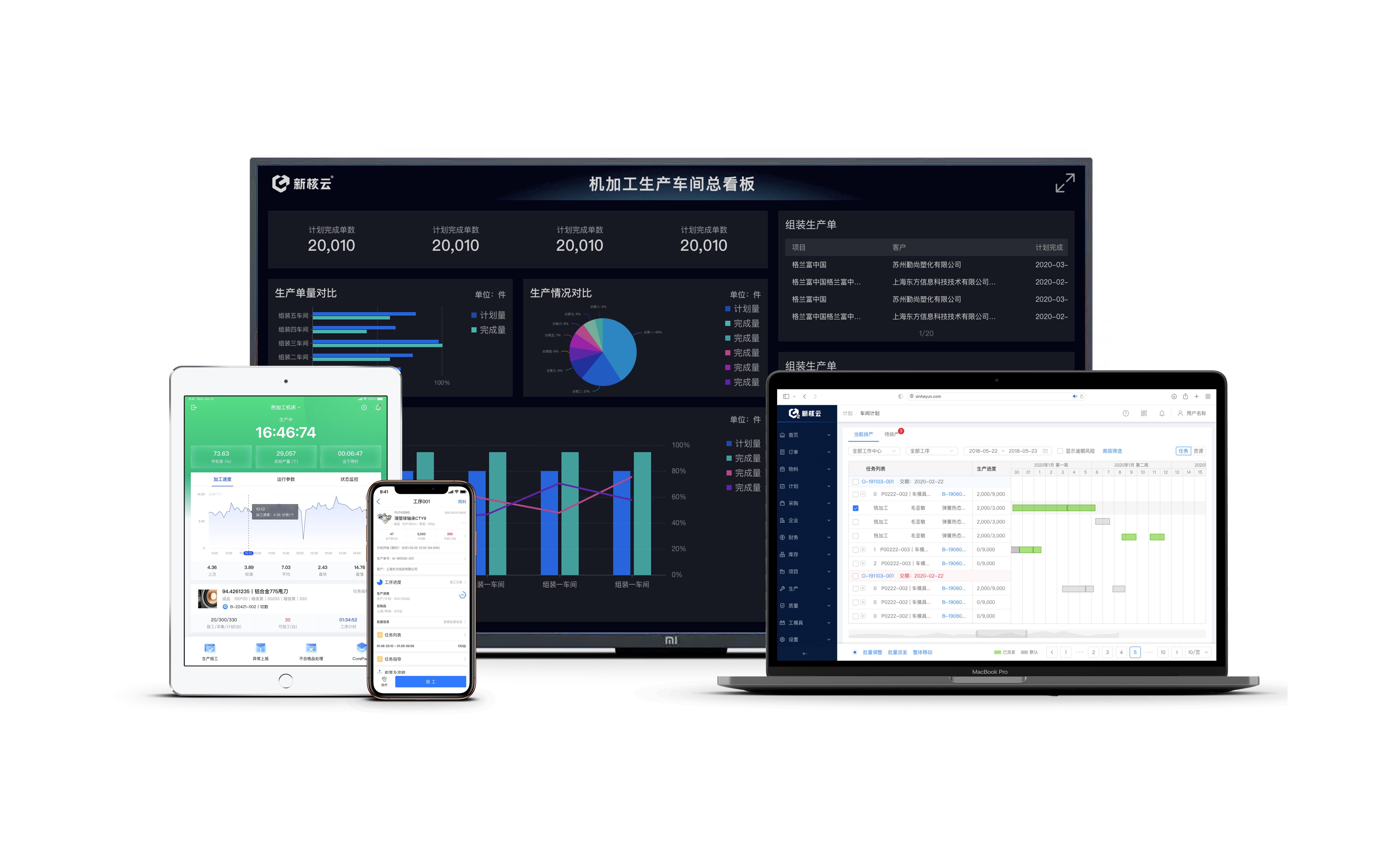 为此,新核云提供的解决方案,是针对离散制造行业的SaaS化MES(制造执行系统,Manufacturing Execution System)产品。新核云MES可以实时管理、监控从原材料到成品的生产执行过程,制定车间计划,跟踪生产进度,管理物料、图纸等生产细节。工厂的生产计划排程、生产管理、质量管理、设备管理,都可以在MES上完成。