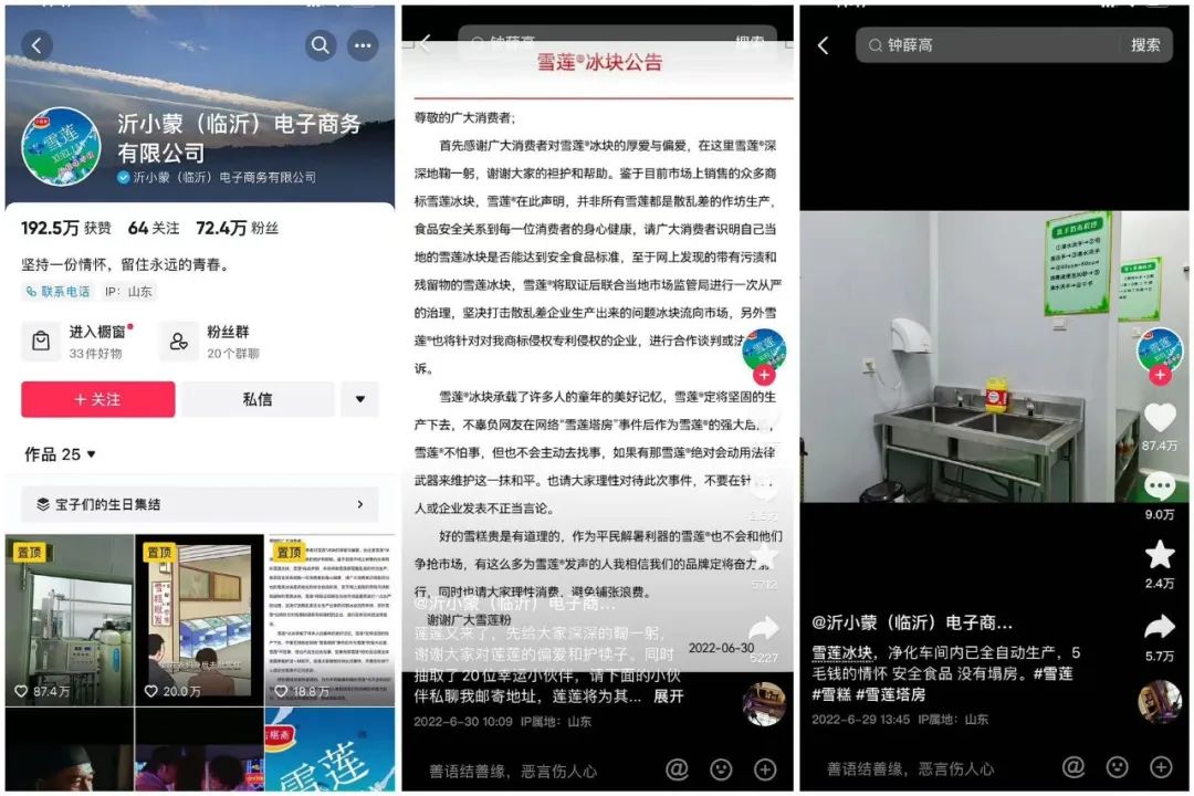 比如此前,动辄几十的“雪糕刺客”被讨论得沸沸扬扬,五毛钱一袋的雪莲一时间被大家奉为良心国货。但在此之后,有人爆料雪莲工厂“脏乱差”,卫生条件堪忧,“雪莲塌房了”也在各个平台迅速传播开来。