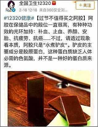 之前,国家卫计委官方微博发布的一则消息指出“阿胶只是水煮驴皮”,微怼“保养圣品”阿胶。
