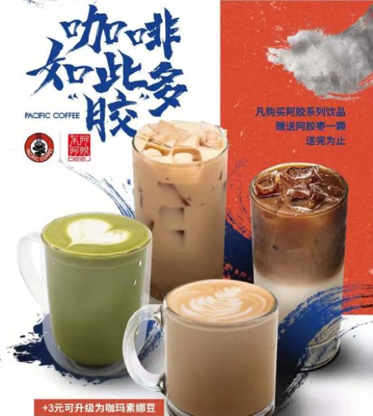 东阿阿胶与太平洋咖啡联合推出“咖啡如此多‘胶’”阿胶系列饮品。