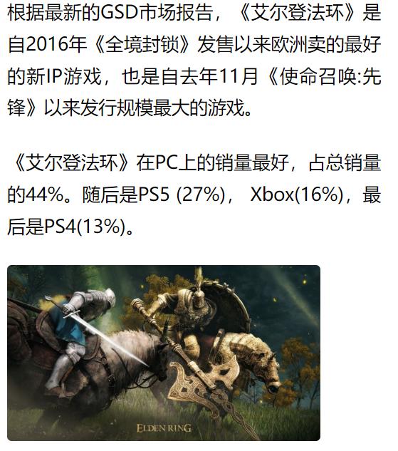 游民星空:《艾尔登法环》是欧洲二月最畅销游戏 PC版销量占44%、