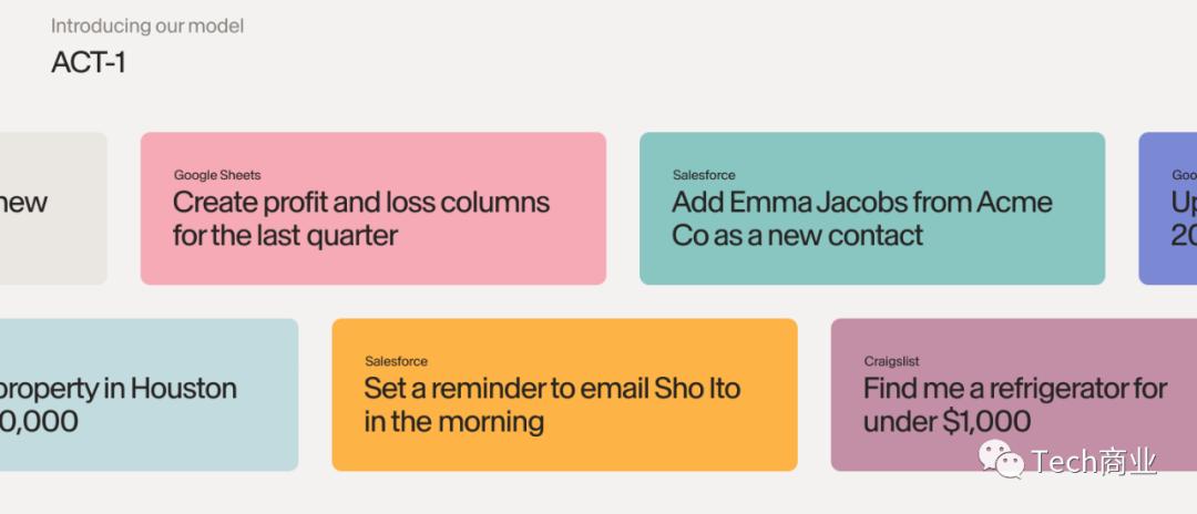 ACT-1 作为现有软件的叠加窗口,可用于执行诸如将 LinkedIn URL 导入招聘软件、在线研究信息、设置电子表格等任务。用户只需在叠加窗口的文本框中键入命令,ACT-1 就会完成剩下的工作。