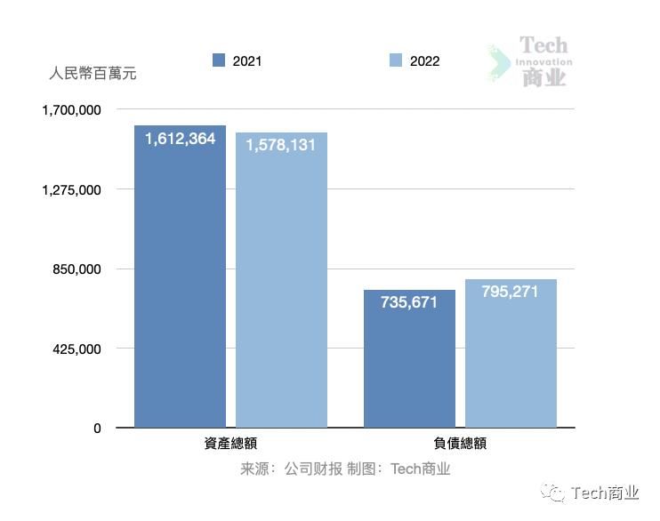 截至本财年末,腾讯公司资产总额为1.578万亿元,上一财年为1.612万亿元,本财年总资产额表现为减少2.1%。该公司本财年总负债额为7953亿元,上一财年为7357亿元,本财年总负债增幅为8.1%。