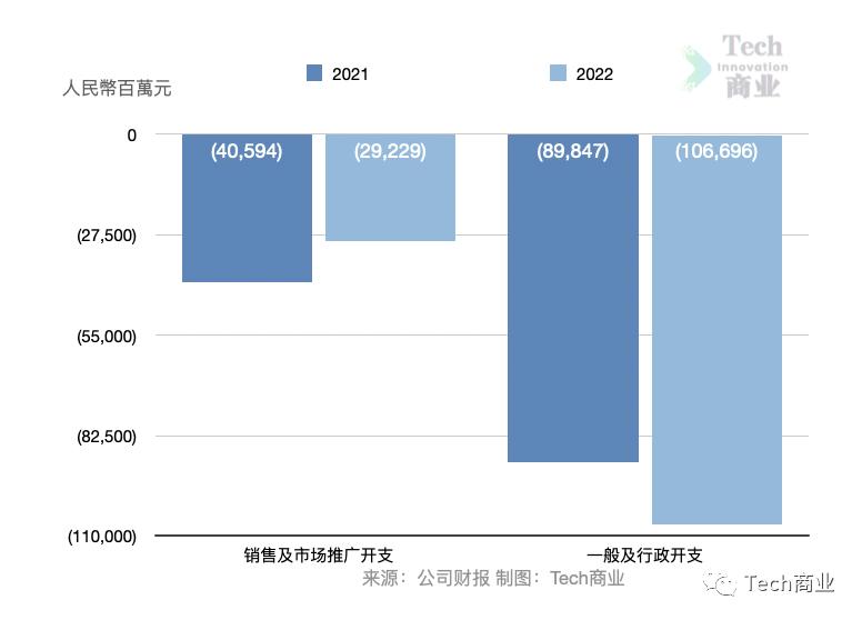 最新财年腾讯公司销售及市场推广开支为292亿元,上一财年该项为406亿元,本财年该项开支减少28%。2022财年腾讯一般与行政开支为1067亿元,该项开支同比增幅18.8%。