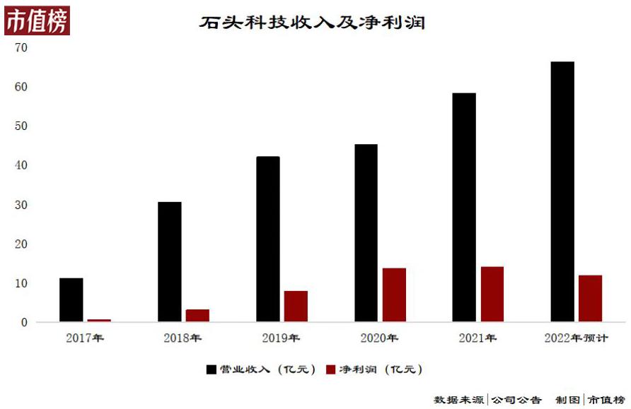 尽管增速有所下滑,石头的营收规模还是保持着增长的态势,净利润则在2022年出现了下滑。