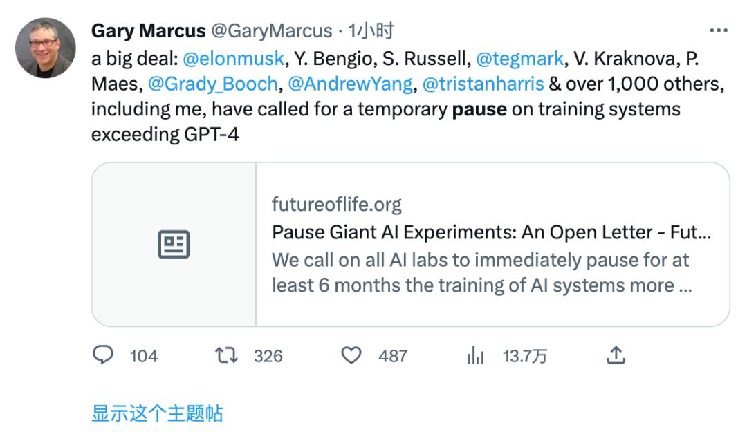 公开信链接: https://futureoflife.org/open-letter/pause-giant-ai-experiments/