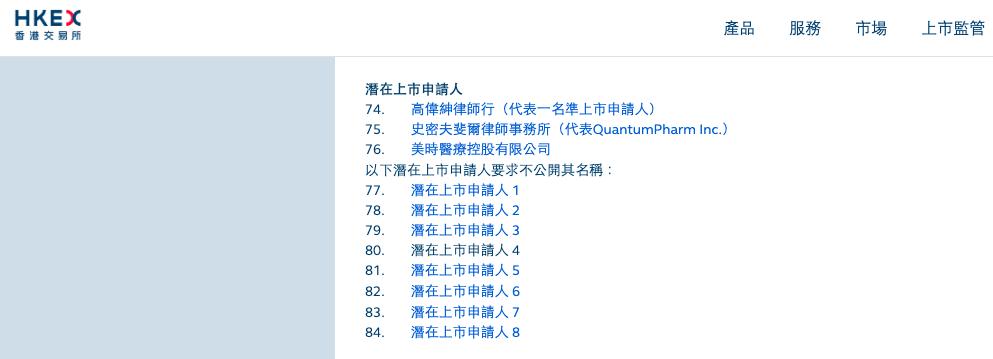 目前,一批企业已经迈出了步伐。根据港交所官网,目前潜在上市申请人共有11家,其中具名的有美时医疗、晶泰科技。