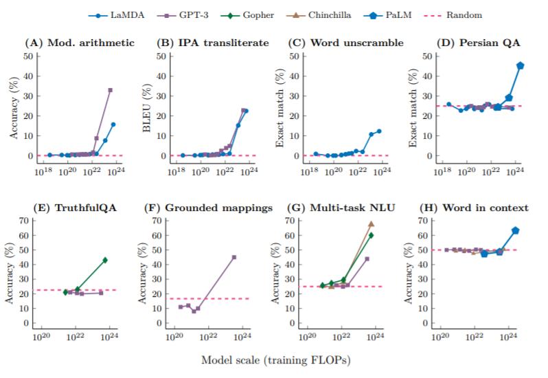 ▲当模型尺寸增加到一定大小后,新能力涌现(来源:Google/Deepmind)